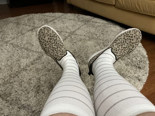 Our compression socks use a graduated compression of 15-20mmHg, offering the perfect balance of support and relief without feeling too tight.
